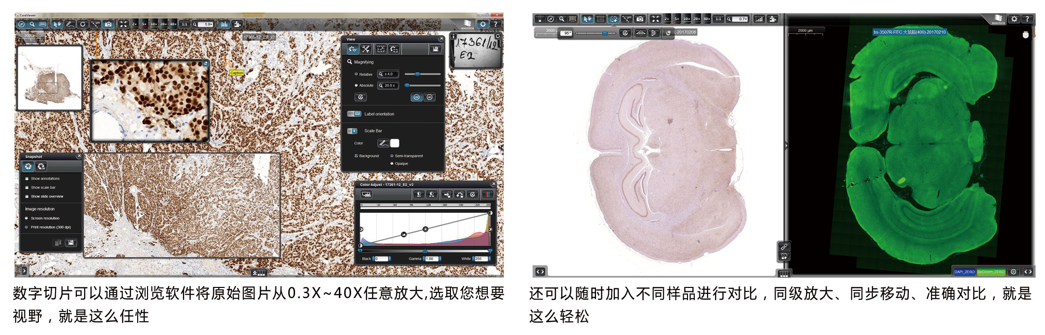 四、全視野數字切片掃描效果體驗 圖像分辨率:0.23μm/pixel (20X物鏡);0.12μm/pixel (40X物鏡))