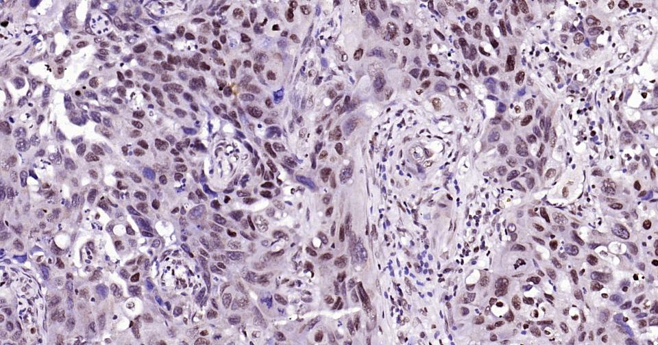 Paraformaldehyde-fixed, paraffin embedded Human Lung Cancer; Antigen retrieval by boiling in sodium citrate buffer (pH6.0) for 15 min; Antibody incubation with Histone H3 Polyclonal Antibody, Unconjugated (bs-0349R) at 1:1000 overnight at 4°C, followed by conjugation to the bs-0295G-HRP and DAB (C-0010) staining.