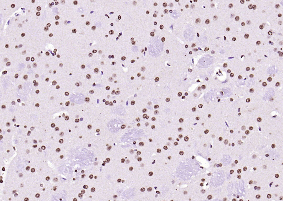 Paraformaldehyde-fixed, paraffin embedded (rat brain); Antigen retrieval by boiling in sodium citrate buffer (pH6.0) for 15min; Block endogenous peroxidase by 3% hydrogen peroxide for 20 minutes; Blocking buffer (normal goat serum) at 37°C for 30min; Antibody incubation with (Histone H3HIST3H3(Nuclear Loading Control)) Polyclonal Antibody, Unconjugated (bs-0349R) at 1:200 overnight at 4°C, followed by operating according to SP Kit(Rabbit) (sp-0023) instructionsand DAB staining.