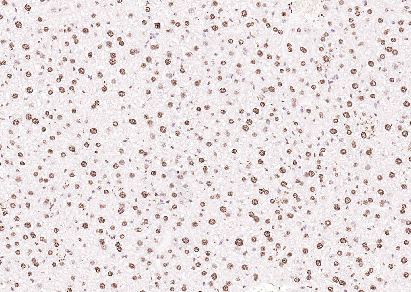 Paraformaldehyde-fixed, paraffin embedded (rat liver); Antigen retrieval by boiling in sodium citrate buffer (pH6.0) for 15min; Block endogenous peroxidase by 3% hydrogen peroxide for 20 minutes; Blocking buffer (normal goat serum) at 37°C for 30min; Antibody incubation with (Histone H3 (Nuclear Loading Control) ) Polyclonal Antibody, Unconjugated (bs-0349R) at 1:200 overnight at 4°C, followed by operating according to SP Kit(Rabbit) (sp-0023) instructionsand DAB staining.