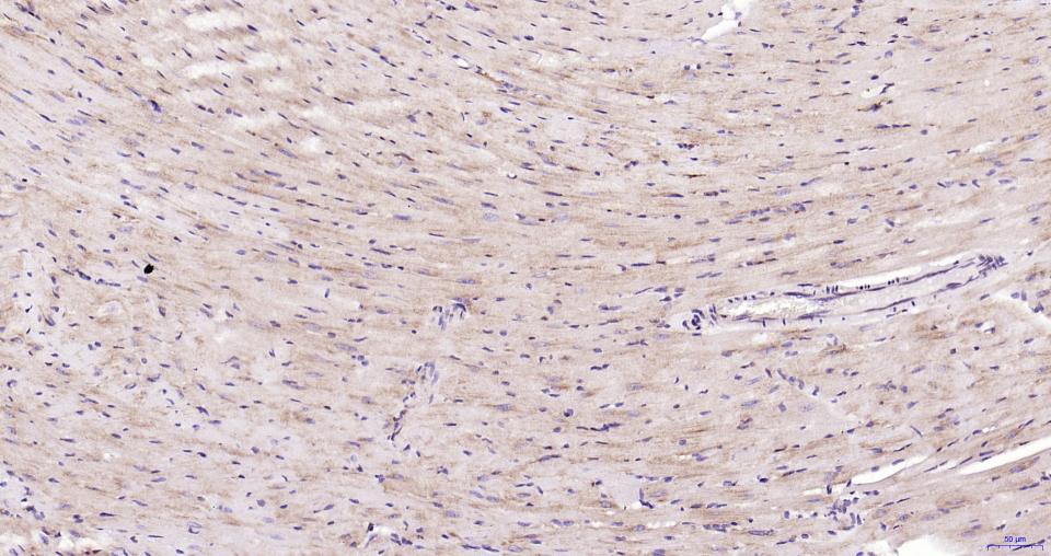 Paraformaldehyde-fixed, paraffin embedded Mouse Heart; Antigen retrieval by boiling in sodium citrate buffer (pH6.0) for 15 min; Antibody incubation with Nrf2 Polyclonal Antibody, Unconjugated (bs-1074R) at 1:200 overnight at 4°C, followed by conjugation to the SP Kit (Rabbit, SP-0023) and DAB (C-0010) staining.