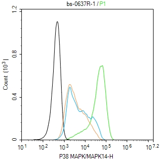 Primary Antibody (green line): Rabbit Anti-P38 MAPK antibody (bs-0637R)