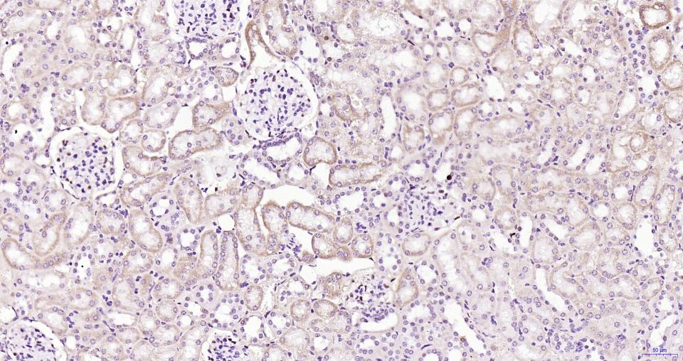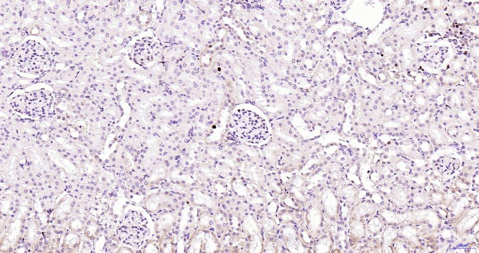 Paraformaldehyde-fixed, paraffin embedded Mouse Kidney; Antigen retrieval by boiling in sodium citrate buffer (pH6.0) for 15 min; Antibody incubation with PCNA Polyclonal Antibody, Unconjugated (bs-0754R) at 1:800 overnight at 4°C, followed by conjugation to the SP Kit (Rabbit, SP-0023) and DAB (C-0010) staining.