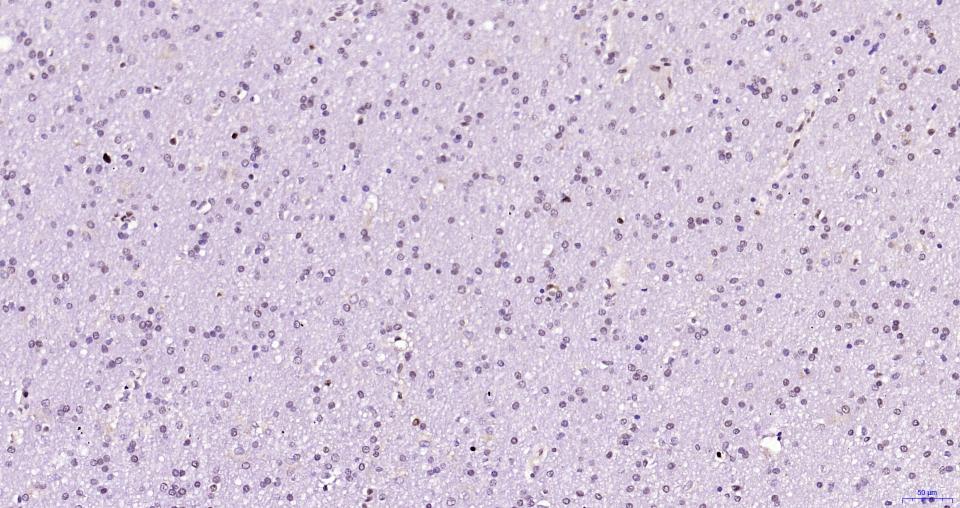 Paraformaldehyde-fixed, paraffin embedded Human Glioma; Antigen retrieval by boiling in sodium citrate buffer (pH6.0) for 15 min; Antibody incubation with PCNA Polyclonal Antibody, Unconjugated (bs-0754R) at 1:800 overnight at 4°C, followed by conjugation to the SP Kit (Rabbit, SP-0023) and DAB (C-0010) staining.