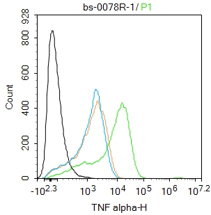 Primary Antibody (green line): Rabbit Anti-TNF alpha antibody (bs-0078R)