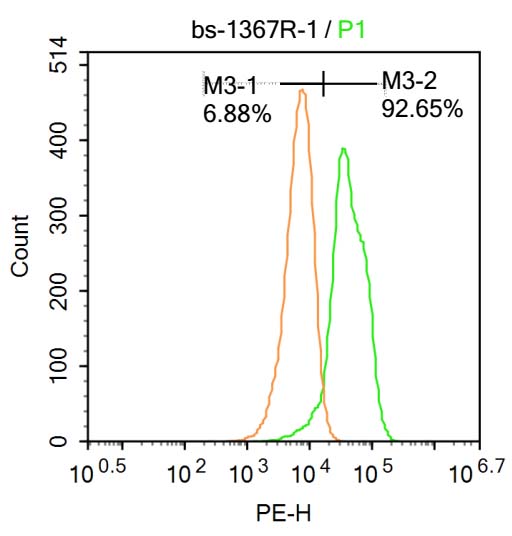 Primary Antibody (green line): Rabbit Anti-VHL antibody (bs-1367R)