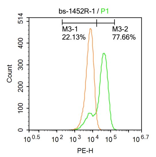 Primary Antibody (green line): Rabbit Anti-GATA3 antibody (bs-1452R)