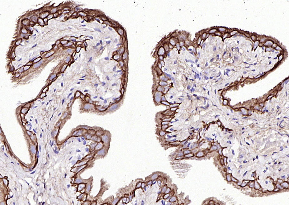 Paraformaldehyde-fixed, paraffin embedded (Rat placenta); Antigen retrieval by boiling in sodium citrate buffer (pH6.0) for 15min; Block endogenous peroxidase by 3% hydrogen peroxide for 20 minutes; Blocking buffer (normal goat serum) at 37°C for 30min; Antibody incubation with (CK7) Polyclonal Antibody, Unconjugated (bs-1744R) at 1:200 overnight at 4°C, followed by operating according to SP Kit(Rabbit) (sp-0023) instructionsand DAB staining.