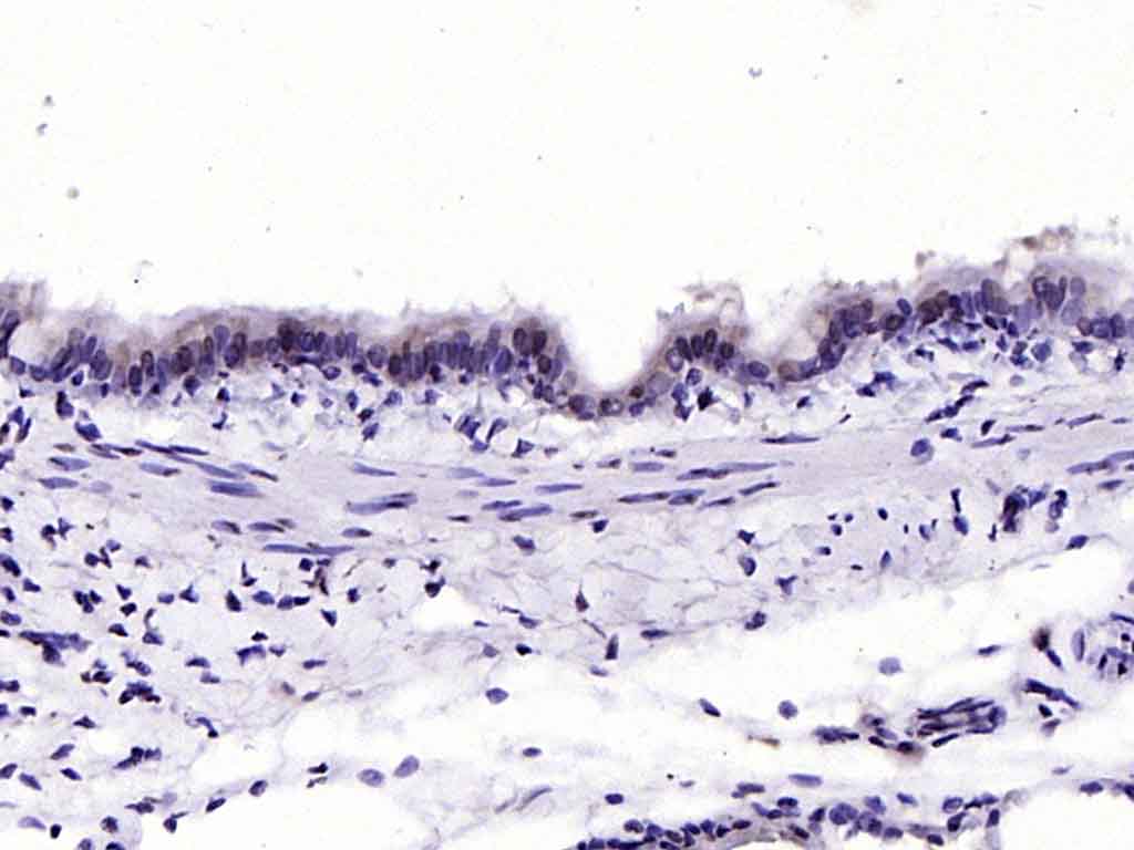 Paraformaldehyde-fixed, paraffin embedded (rat lung); Antigen retrieval by boiling in sodium citrate buffer (pH6.0) for 15min; Block endogenous peroxidase by 3% hydrogen peroxide for 20 minutes; Blocking buffer (normal goat serum) at 37°C for 30min; Antibody incubation with (HFH4) Polyclonal Antibody, Unconjugated (bs-1775R) at 1:200 overnight at 4°C, followed by operating according to SP Kit(Rabbit) (sp-0023) instructionsand DAB staining.
