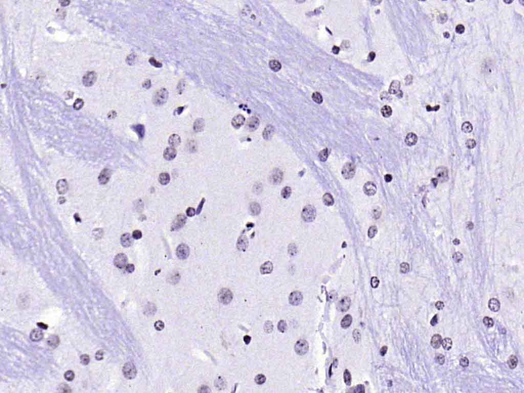 Paraformaldehyde-fixed, paraffin embedded (mouse brain); Antigen retrieval by boiling in sodium citrate buffer (pH6.0) for 15min; Block endogenous peroxidase by 3% hydrogen peroxide for 20 minutes; Blocking buffer (normal goat serum) at 37°C for 30min; Antibody incubation with (HFH4) Polyclonal Antibody, Unconjugated (bs-1775R) at 1:200 overnight at 4°C, followed by operating according to SP Kit(Rabbit) (sp-0023) instructionsand DAB staining.
