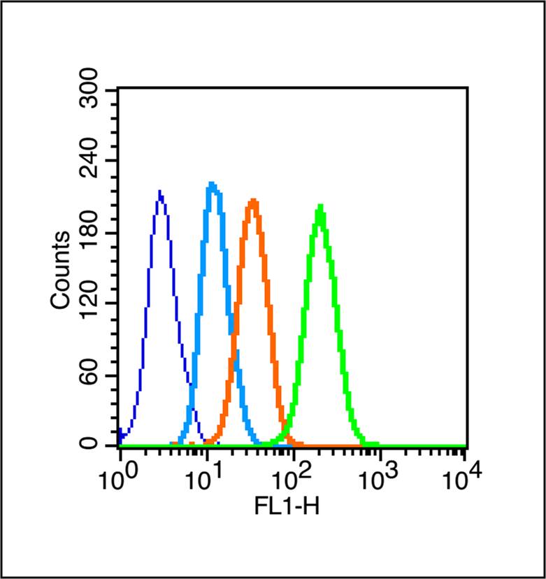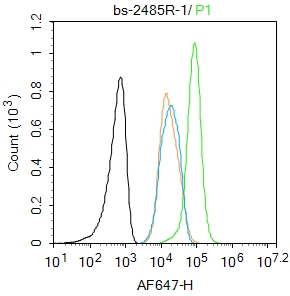 Primary Antibody (green line): Rabbit Anti-phospho-JAK2(Tyr1007+Tyr1008) antibody (bs-2485R)