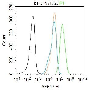 Primary Antibody (green line): Rabbit Anti-phospho-IRS1 (Ser1101) antibody (bs-3197R),Dilution: 0.2μg /10^6 cells;