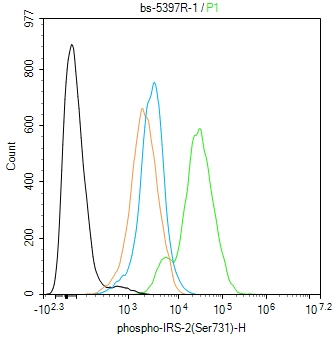 Primary Antibody (green line): Rabbit Anti-phospho-IRS-2(Ser731) antibody (bs-5397R)