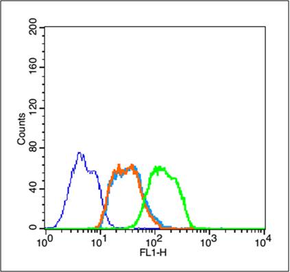 Secondary Antibody (white blue line): Goat anti-rabbit IgG-FITC,Dilution: 1μg /test.