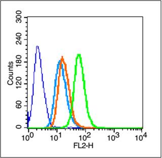 Secondary Antibody (white blue line): Goat anti-rabbit IgG-PE,Dilution: 1μg /test.