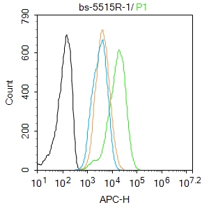 Primary Antibody (green line): Rabbit Anti- phospho-IKB alpha (Tyr305) antibody (bs-5515R)