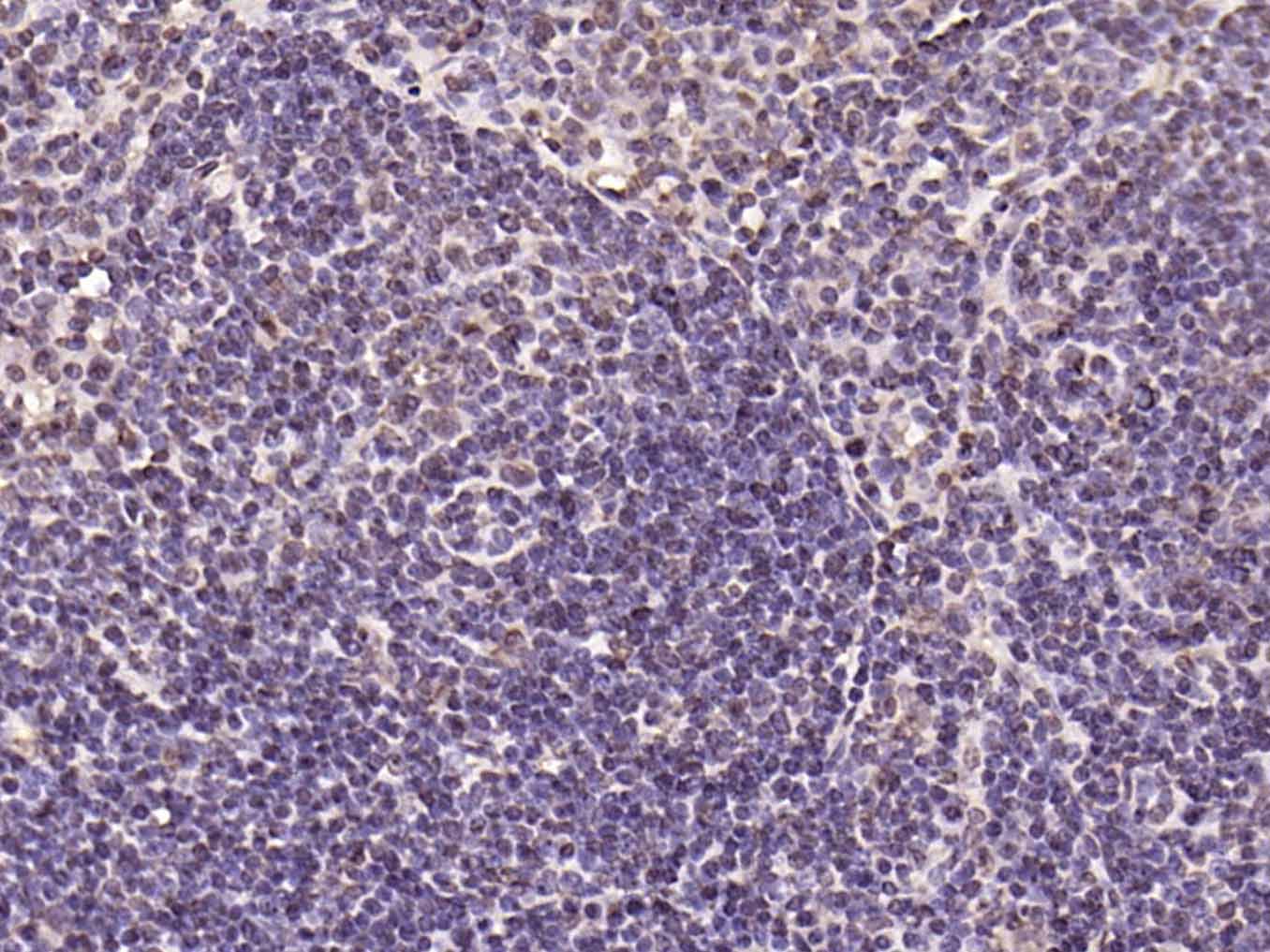 Paraformaldehyde-fixed, paraffin embedded (rat lymphoid); Antigen retrieval by boiling in sodium citrate buffer (pH6.0) for 15min; Block endogenous peroxidase by 3% hydrogen peroxide for 20 minutes; Blocking buffer (normal goat serum) at 37°C for 30min; Antibody incubation with (phospho-IKB alpha (Tyr305)) Polyclonal Antibody, Unconjugated (bs-5515R) at 1:200 overnight at 4°C, followed by operating according to SP Kit(Rabbit) (sp-0023) instructionsand DAB staining.