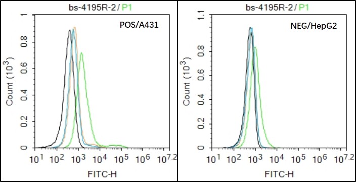 Black line : Positive blank control A431); Negative blank control (HepG2)