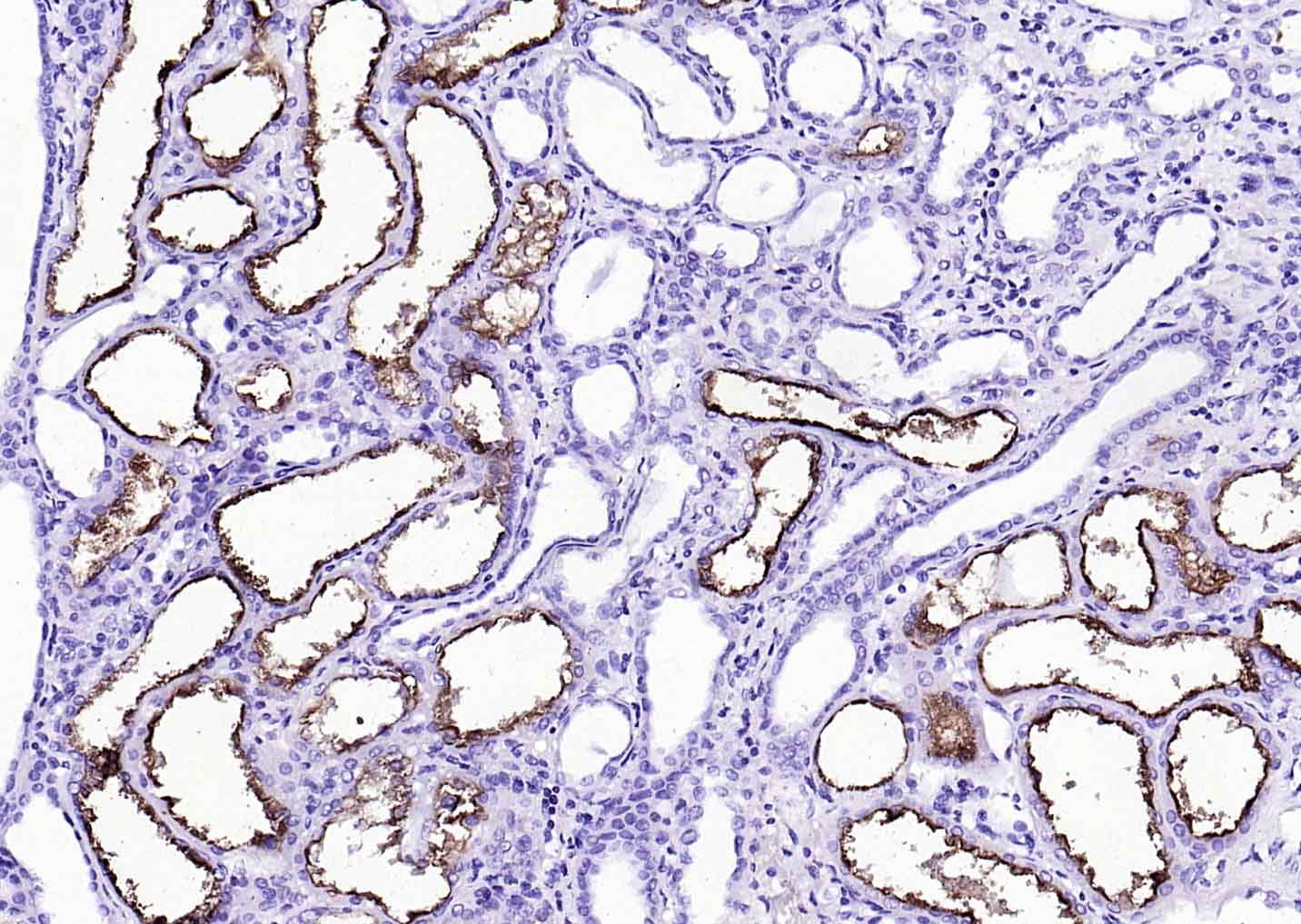 Paraformaldehyde-fixed, paraffin embedded (Human kidney cancer); Antigen retrieval by boiling in sodium citrate buffer (pH6.0) for 15min; Block endogenous peroxidase by 3% hydrogen peroxide for 20 minutes; Blocking buffer (normal goat serum) at 37°C for 30min; Antibody incubation with (ACE2) Polyclonal Antibody, Unconjugated (bs-46001R) at 1:200 overnight at 4°C, followed by operating according to SP Kit(Rabbit) (sp-0023 bs-0295G-HRP 1:300) instructionsand DAB staining.