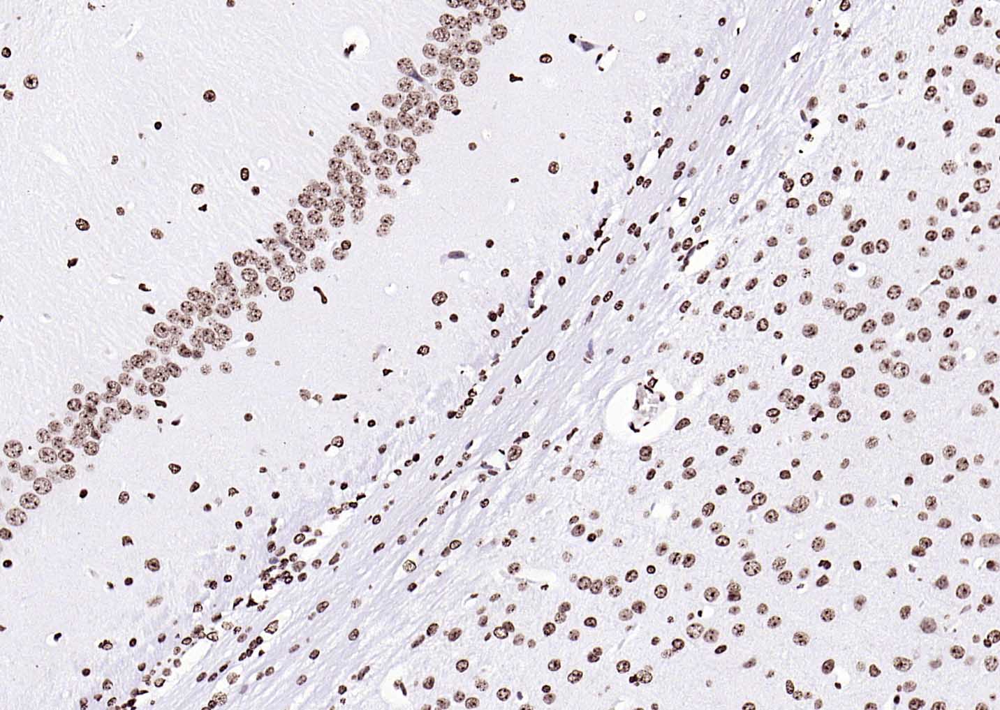 Paraformaldehyde-fixed, paraffin embedded (mouse brain); Antigen retrieval by boiling in sodium citrate buffer (pH6.0) for 15min; Block endogenous peroxidase by 3% hydrogen peroxide for 20 minutes; Blocking buffer (normal goat serum) at 37°C for 30min; Antibody incubation with (Histone H3 (Nuclear Loading Control)) Polyclonal Antibody, Unconjugated (bs-0349R) at 1:200 overnight at 4°C, followed by operating according to SP Kit(Rabbit) (sp-0023 bs-0295G-HRP 1:100) instructionsand DAB staining.