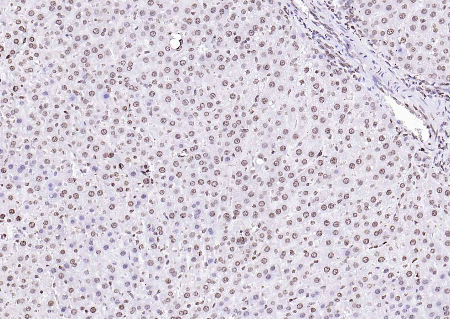 Paraformaldehyde-fixed, paraffin embedded (rat liver); Antigen retrieval by boiling in sodium citrate buffer (pH6.0) for 15min; Block endogenous peroxidase by 3% hydrogen peroxide for 20 minutes; Blocking buffer (normal goat serum) at 37°C for 30min; Antibody incubation with (Histone H3 (Nuclear Loading Control)) Polyclonal Antibody, Unconjugated (bs-0349R) at 1:200 overnight at 4°C, followed by operating according to SP Kit(Rabbit) (sp-0023 bs-0295G-HRP 1:100) instructionsand DAB staining.