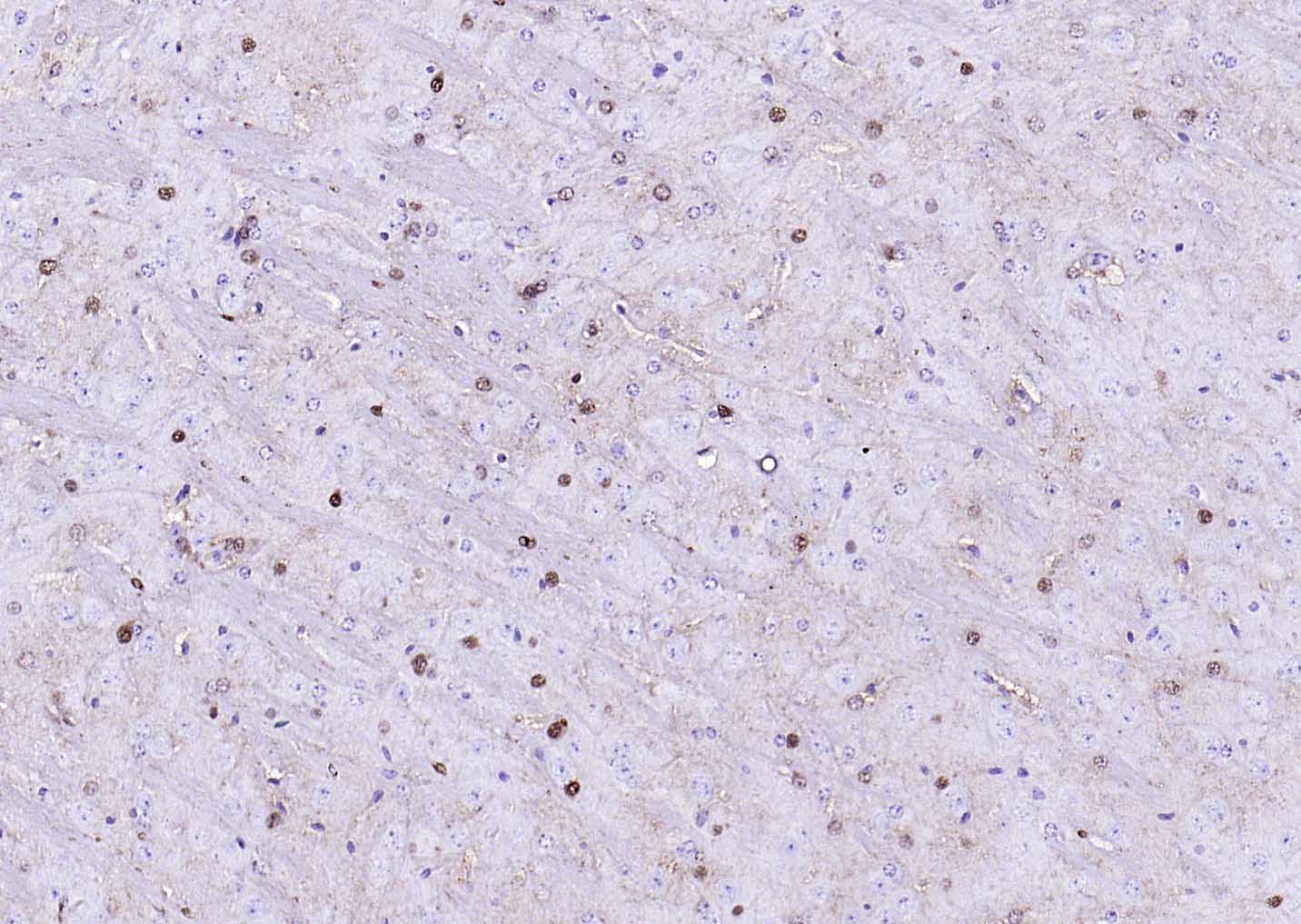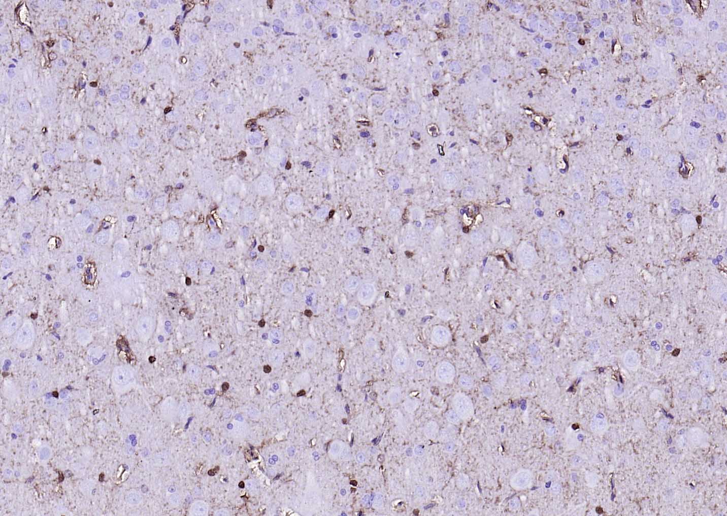 Paraformaldehyde-fixed, paraffin embedded (rat brain); Antigen retrieval by boiling in sodium citrate buffer (pH6.0) for 15min; Block endogenous peroxidase by 3% hydrogen peroxide for 20 minutes; Blocking buffer (normal goat serum) at 37°C for 30min; Antibody incubation with (S100B) Monoclonal Antibody, Unconjugated (bsm-10832M) at 1:200 overnight at 4°C, followed by operating according to SP Kit(Mouse)(sp-0024 bs-0296G-HRP 1:100) instructionsand DAB staining.