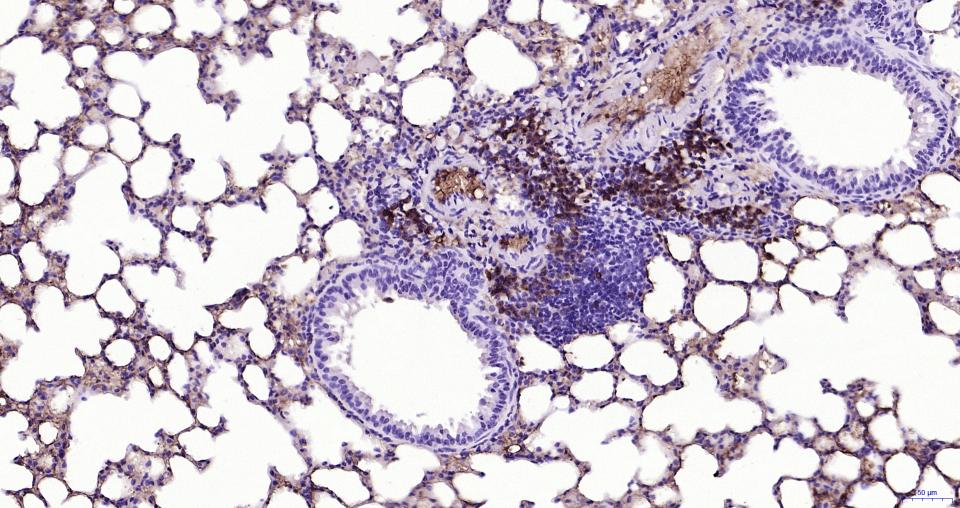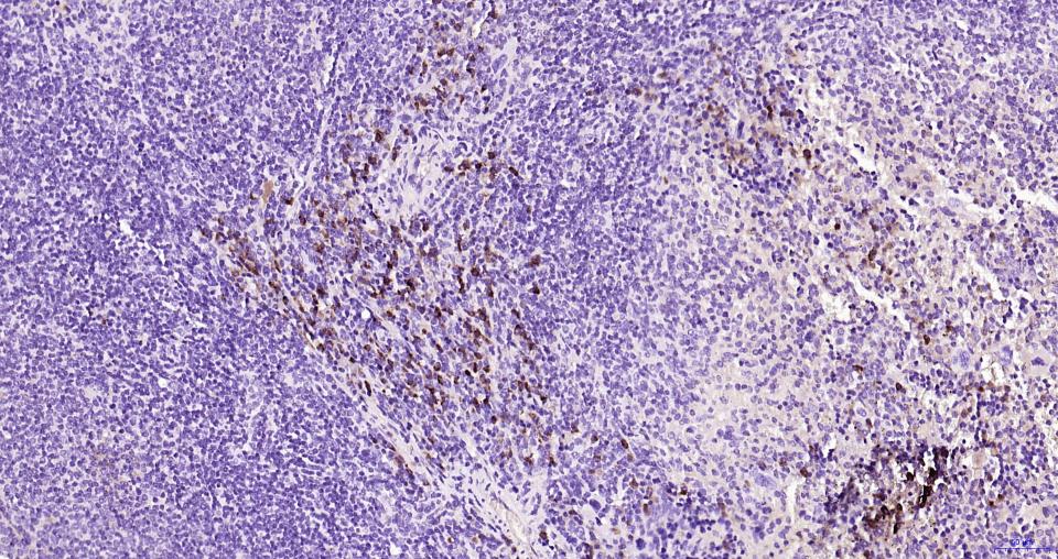 Paraformaldehyde-fixed, paraffin embedded Mouse spleen; Antigen retrieval by boiling in sodium citrate buffer (pH6.0) for 15 min; Antibody incubation with Ly-6G Monoclonal Antibody, Unconjugated(bsm-30178A) at 1:200 overnight at 4°C, followed by conjugation to the bs-0293G-HRP and DAB (C-0010) staining.