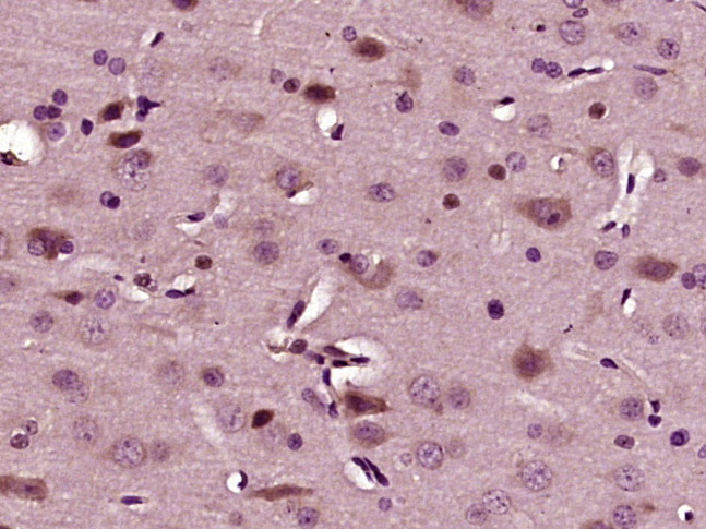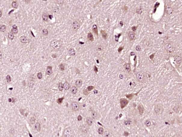 Paraformaldehyde-fixed, paraffin embedded (mouse brain tissue); Antigen retrieval by boiling in sodium citrate buffer (pH6.0) for 15min; Block endogenous peroxidase by 3% hydrogen peroxide for 20 minutes; Blocking buffer (normal goat serum) at 37°C for 30min; Antibody incubation with (STMN1) Polyclonal Antibody, Unconjugated (bs-9764R) at 1:400 overnight at 4°C, followed by operating according to SP Kit(Rabbit) (sp-0023) instructionsand DAB staining.