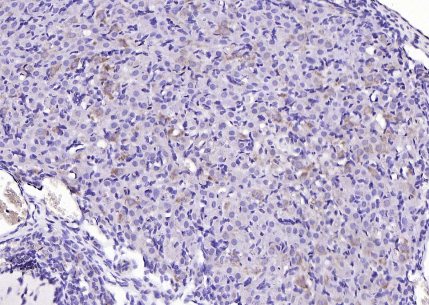 Paraformaldehyde-fixed, paraffin embedded (human brain glioma); Antigen retrieval by boiling in sodium citrate buffer (pH6.0) for 15min; Block endogenous peroxidase by 3% hydrogen peroxide for 20 minutes; Blocking buffer (normal goat serum) at 37°C for 30min; Antibody incubation with (STMN1) Polyclonal Antibody, Unconjugated (bs-9764R) at 1:400 overnight at 4°C, followed by operating according to SP Kit(Rabbit) (sp-0023) instructionsand DAB staining.