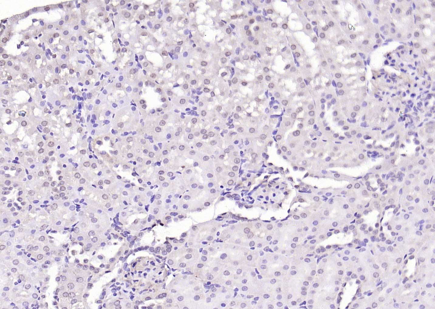 Paraformaldehyde-fixed, paraffin embedded (rat kidney); Antigen retrieval by boiling in sodium citrate buffer (pH6.0) for 15min; Block endogenous peroxidase by 3% hydrogen peroxide for 20 minutes; Blocking buffer (normal goat serum) at 37°C for 30min; Antibody incubation with (HDAC3/HD3 ) Polyclonal Antibody, Unconjugated (bs-10024R) at 1:200 overnight at 4°C, followed by operating according to SP Kit(Rabbit) (sp-0023) instructionsand DAB staining.