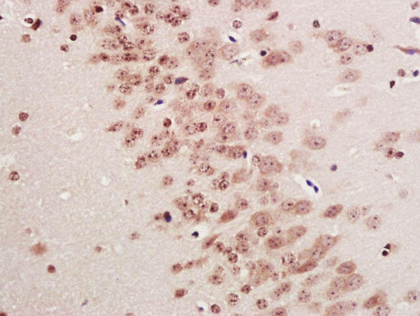 Paraformaldehyde-fixed, paraffin embedded (rat brain); Antigen retrieval by boiling in sodium citrate buffer (pH6.0) for 15min; Block endogenous peroxidase by 3% hydrogen peroxide for 20 minutes; Blocking buffer (normal goat serum) at 37°C for 30min; Antibody incubation with (KEAP1) Polyclonal Antibody, Unconjugated (bs-4900R) at 1:200 overnight at 4°C, followed by operating according to SP Kit(Rabbit) (sp-0023) instructionsand DAB staining.