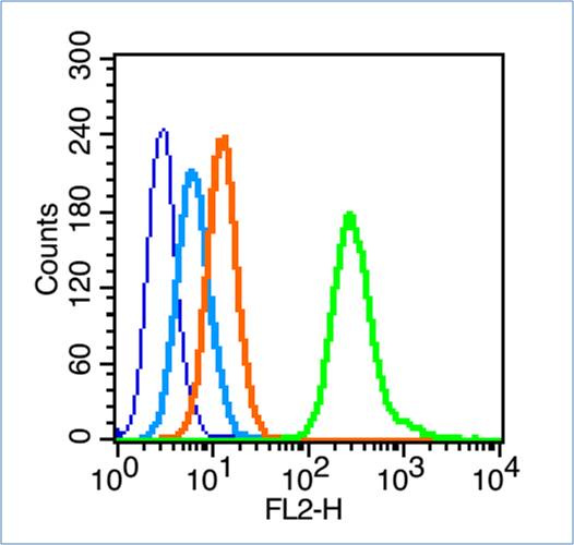 Secondary Antibody (white blue line): Goat anti-rabbit IgG-PE,Dilution: 1μg /test.
