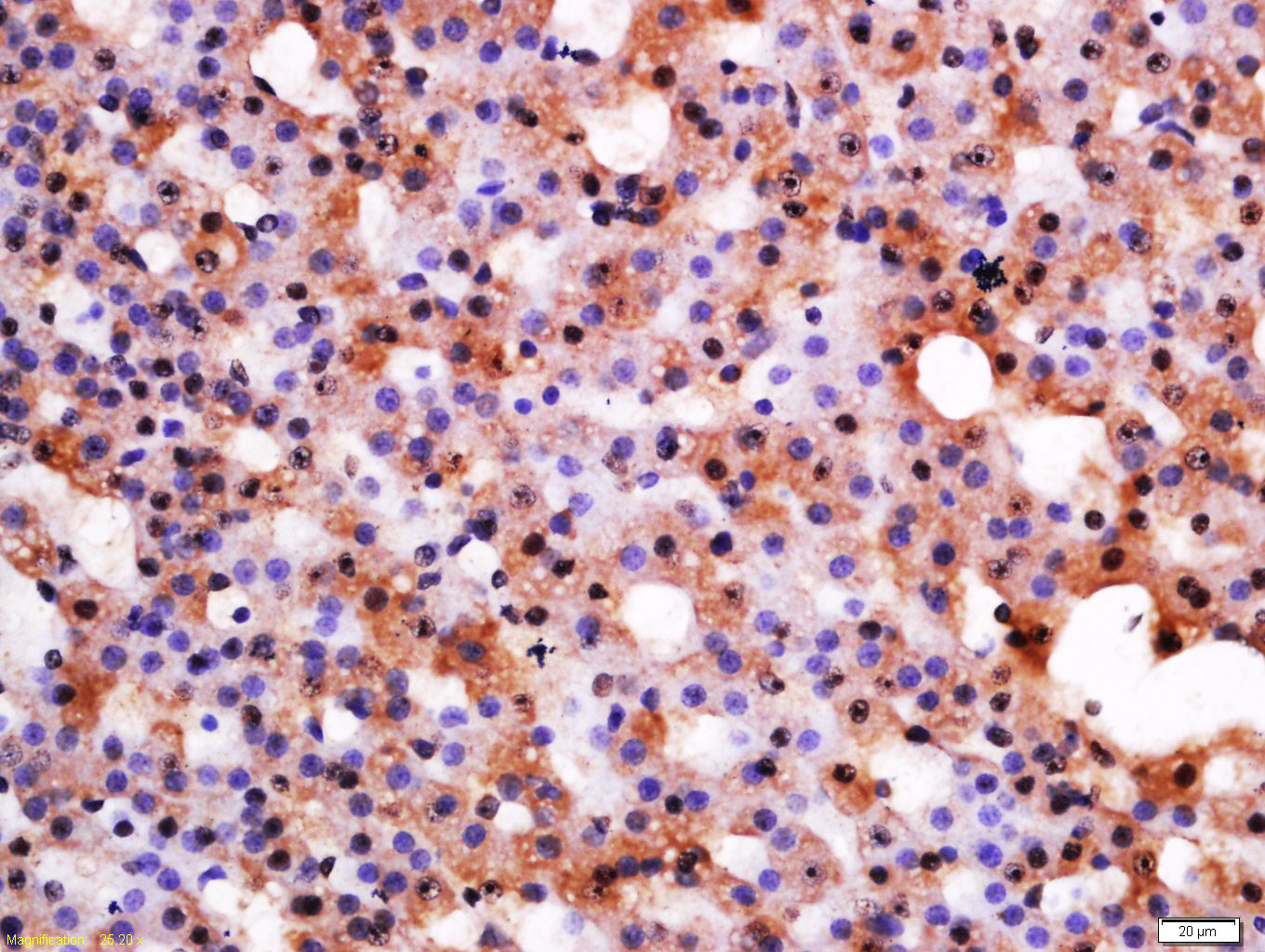 Antigen retrieval: citrate buffer ( 0.01M, pH 6.0 ), Boiling bathing for 15min; Block endogenous peroxidase by 3% Hydrogen peroxide for 30min; Blocking buffer (normal goat serum,C-0005) at 37∩ for 20 min;