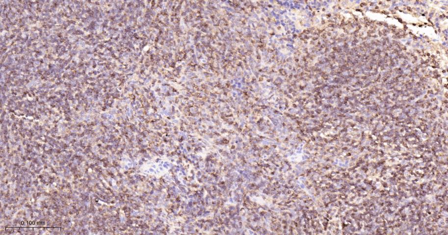 Paraformaldehyde-fixed, paraffin embedded Mouse Spleen; Antigen retrieval by boiling in sodium citrate buffer (pH6.0) for 15 min; Antibody incubation with CD45 Polyclonal Antibody, Unconjugated(bs-10602R) at 1:200 overnight at 4°C, followed by conjugation to the bs-0295G-HRP and DAB (C-0010) staining.