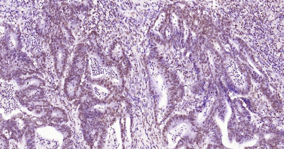 Paraformaldehyde-fixed, paraffin embedded Human Colon Cancer; Antigen retrieval by boiling in sodium citrate buffer (pH6.0) for 15 min; Antibody incubation with Histone H3 Monoclonal Antibody, Unconjugated (ascites of bsm-33042M) at 1:1500 overnight at 4°C, followed by conjugation to the bs-40296G-HRP and DAB (C-0010) staining.