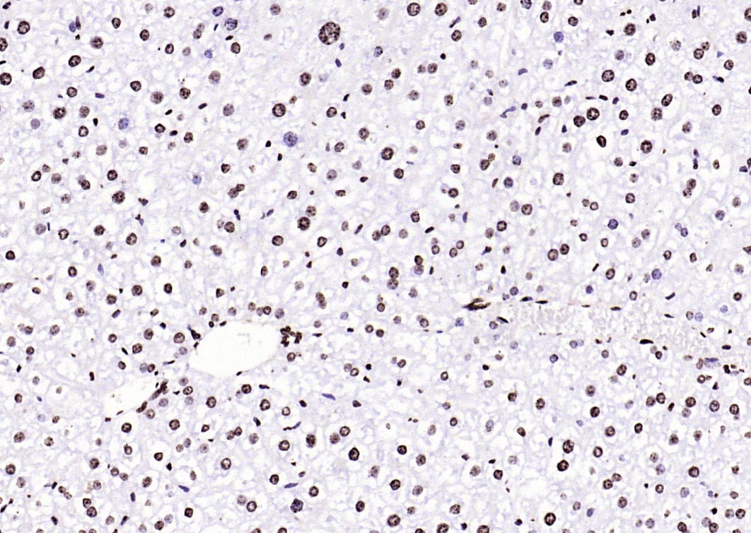 Paraformaldehyde-fixed, paraffin embedded (mouse liver); Antigen retrieval by boiling in sodium citrate buffer (pH6.0) for 15min; Block endogenous peroxidase by 3% hydrogen peroxide for 20 minutes; Blocking buffer (normal goat serum) at 37°C for 30min; Antibody incubation with (Histone H3(di methyl K36)) Monoclonal Antibody, Unconjugated (ascites of bsm-33124M 1E6) at 1:2000 overnight at 4°C, followed by operating according to SP Kit(Mouse) (sp-0024) instructions and DAB staining.