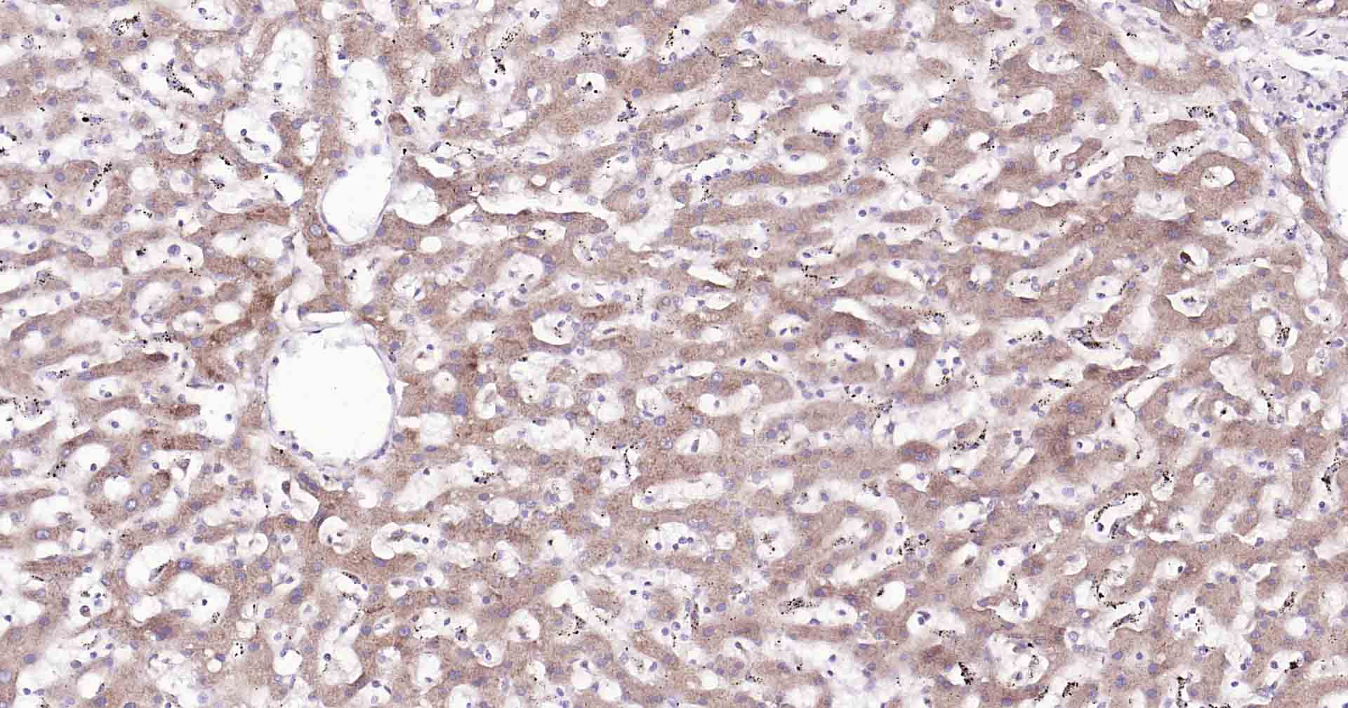 Paraformaldehyde-fixed, paraffin embedded Human Liver; Antigen retrieval by boiling in sodium citrate buffer (pH6.0) for 15 min; Antibody incubation with Cyclophilin B(Loading Control) Monoclonal Antibody, Unconjugated(bsm-33228M) at 1:200 overnight at 4°C, followed by conjugation to the SP Kit (Mouse, sp-0024) and DAB (C-0010) staining.
