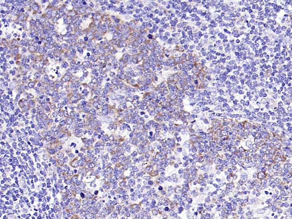 Paraformaldehyde-fixed, paraffin embedded (human tonsil); Antigen retrieval by boiling in sodium citrate buffer (pH6.0) for 15min; Block endogenous peroxidase by 3% hydrogen peroxide for 20 minutes; Blocking buffer (normal goat serum) at 37°C for 30min; Antibody incubation with (IL-6R alpha) Polyclonal Antibody, Unconjugated (bs-43015R) at 1:200 overnight at 4°C, followed by operating according to SP Kit(Rabbit) (sp-0023) instructionsand DAB staining.