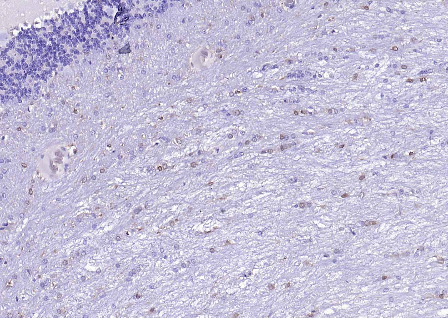 Paraformaldehyde-fixed, paraffin embedded (rat cerebellum); Antigen retrieval by boiling in sodium citrate buffer (pH6.0) for 15min; Block endogenous peroxidase by 3% hydrogen peroxide for 20 minutes; Blocking buffer (normal goat serum) at 37°C for 30min; Antibody incubation with (S100B) Monoclonal Antibody, Unconjugated (bsm-10832M) at 1:200 overnight at 4°C,