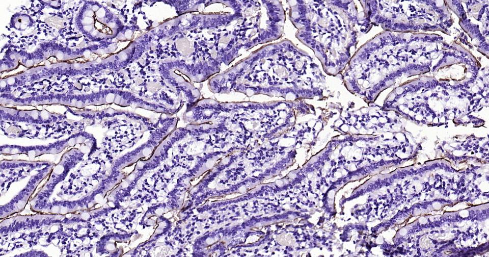 Paraformaldehyde-fixed, paraffin embedded Human Duodenum; Antigen retrieval by boiling in sodium citrate buffer (pH6.0) for 15 min; Antibody incubation with CD13 Monoclonal Antibody, Unconjugated(bsm-60371R) at 1:200 overnight at 4°C, followed by conjugation to the SP Kit (Rabbit, SP-0023) and DAB (C-0010) staining.