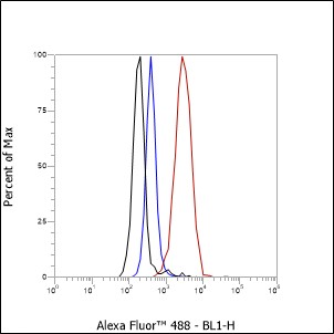 Unlabelled control: The cell without incubation with primary antibody and secondary antibody (Black line).