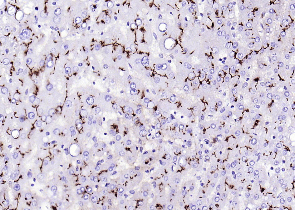 Paraformaldehyde-fixed, paraffin embedded (mouse liver); Antigen retrieval by boiling in sodium citrate buffer (pH6.0) for 15min; Block endogenous peroxidase by 3% hydrogen peroxide for 20 minutes; Blocking buffer (normal goat serum) at 37°C for 30min; Antibody incubation with (CD13) Monoclonal Antibody, Unconjugated (bsm-60371R) at 1:200 overnight at 4°C, followed by operating according to SP Kit(Rabbit) (sp-0023) instructionsand DAB staining.
