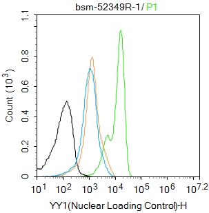 Primary Antibody (green line): Rabbit Anti-YY1(Nuclear Loading Control) antibody (bsm-52349R)