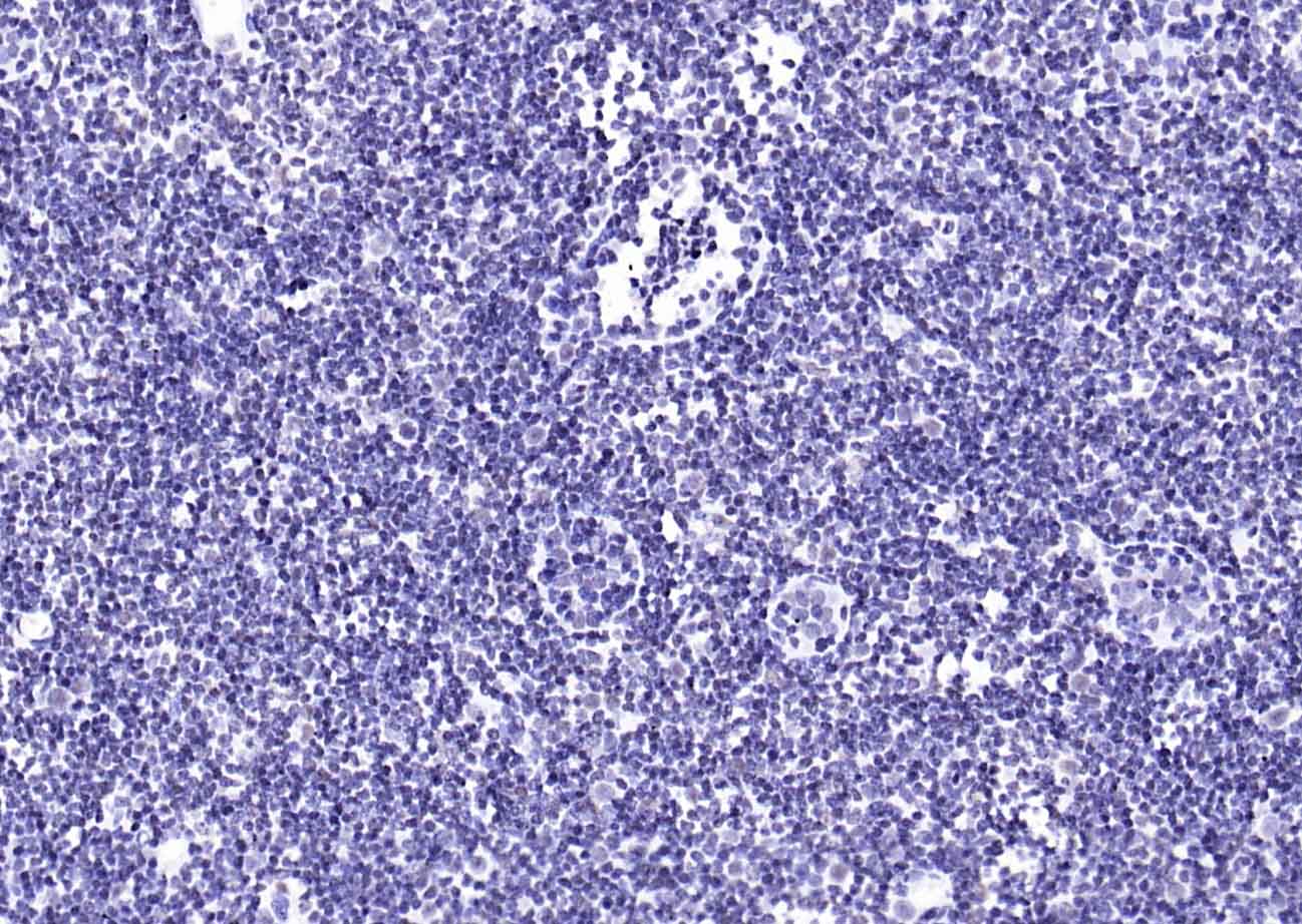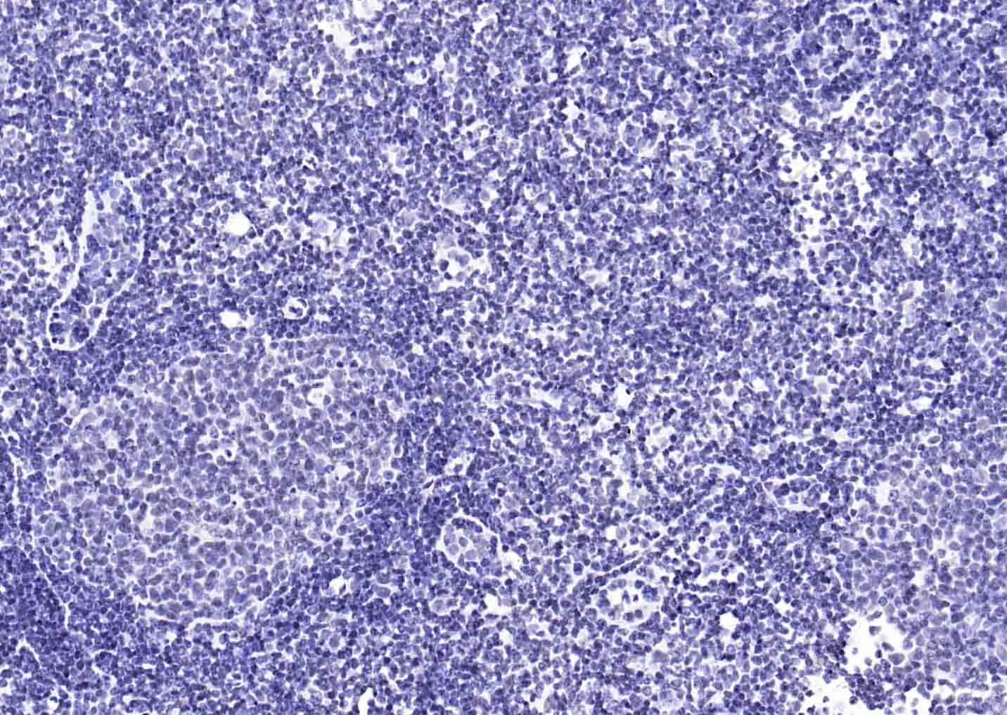 Paraformaldehyde-fixed, paraffin embedded (mouse lymphoid); Antigen retrieval by boiling in sodium citrate buffer (pH6.0) for 15min; Block endogenous peroxidase by 3% hydrogen peroxide for 20 minutes; Blocking buffer (normal goat serum) at 37°C for 30min; Antibody incubation with (YY1(Nuclear Loading Control)) Monoclonal Antibody, Unconjugated (bsm-52349R) at 1:200 overnight at 4°C, followed by operating according to SP Kit(Rabbit) (sp-0023) instructionsand DAB staining.