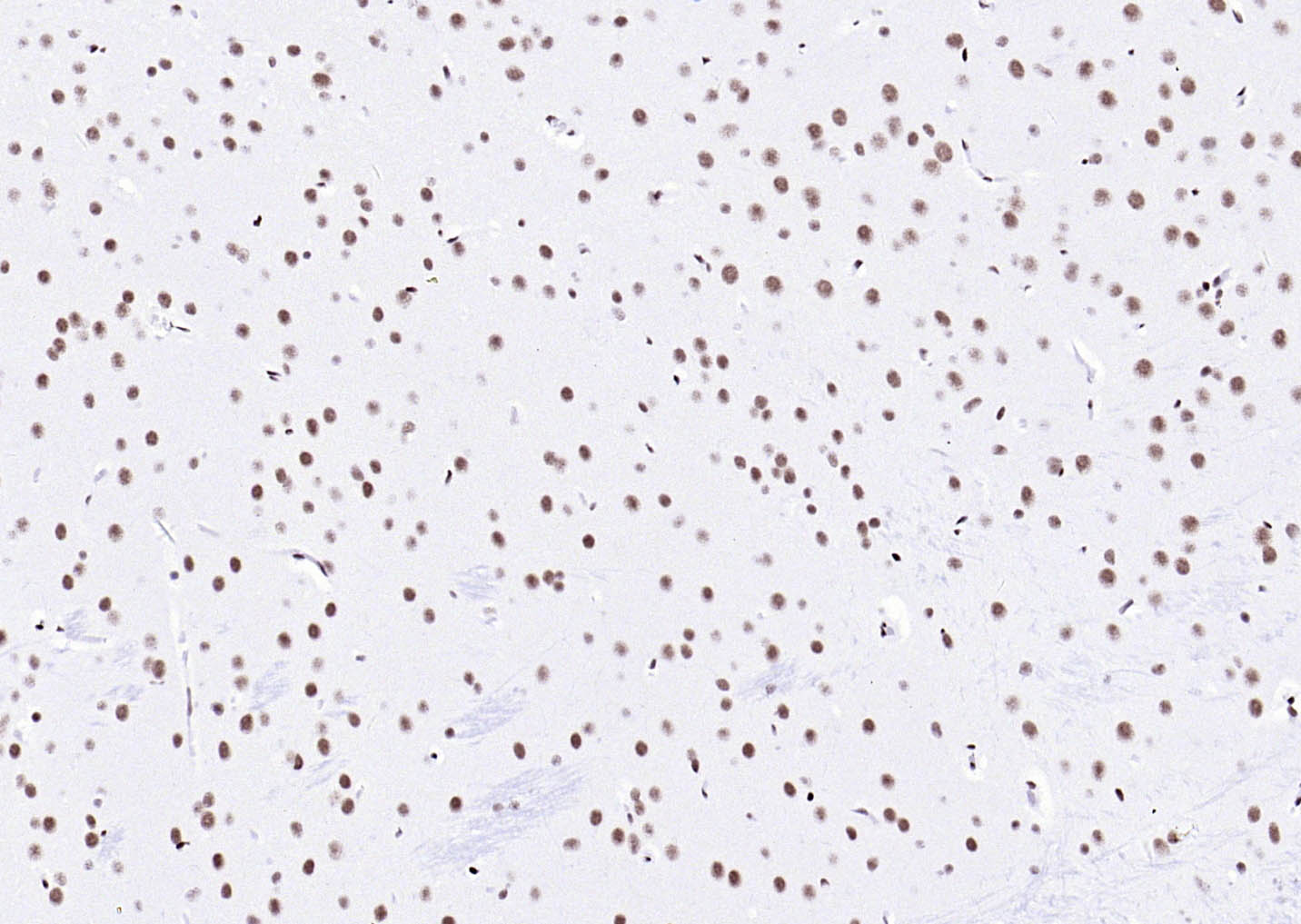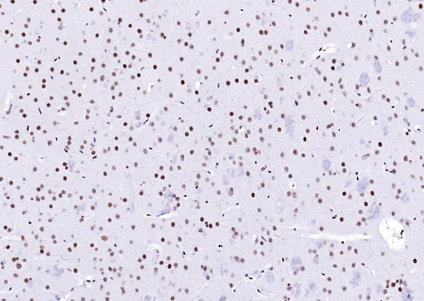 Paraformaldehyde-fixed, paraffin embedded (rat brain); Antigen retrieval by boiling in sodium citrate buffer (pH6.0) for 15min; Block endogenous peroxidase by 3% hydrogen peroxide for 20 minutes; Blocking buffer (normal goat serum) at 37°C for 30min; Antibody incubation with (YY1(Nuclear Loading Control)) Monoclonal Antibody, Unconjugated (bsm-52349R) at 1:200 overnight at 4°C, followed by operating according to SP Kit(Rabbit) (sp-0023) instructionsand DAB staining.