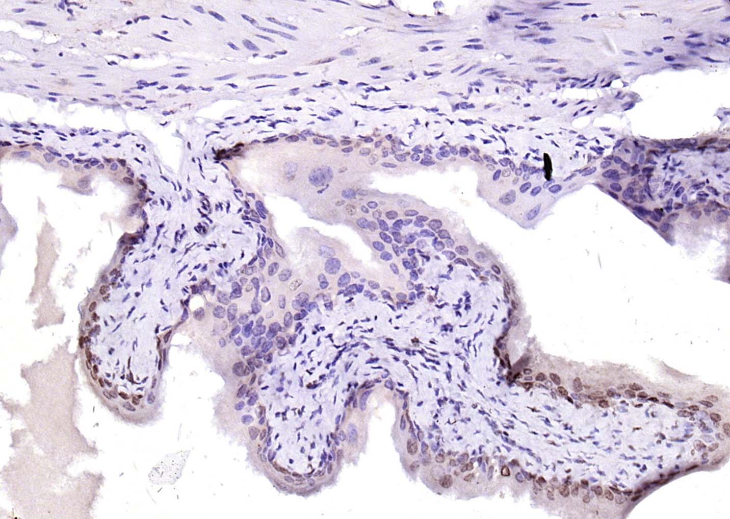 Paraformaldehyde-fixed, paraffin embedded (Rat bladder); Antigen retrieval by boiling in sodium citrate buffer (pH6.0) for 15min; Block endogenous peroxidase by 3% hydrogen peroxide for 20 minutes; Blocking buffer (normal goat serum) at 37°C for 30min; Antibody incubation with (YY1(Nuclear Loading Control)) Monoclonal Antibody, Unconjugated (bsm-52349R) at 1:200 overnight at 4°C, followed by operating according to SP Kit(Rabbit) (sp-0023) instructionsand DAB staining.