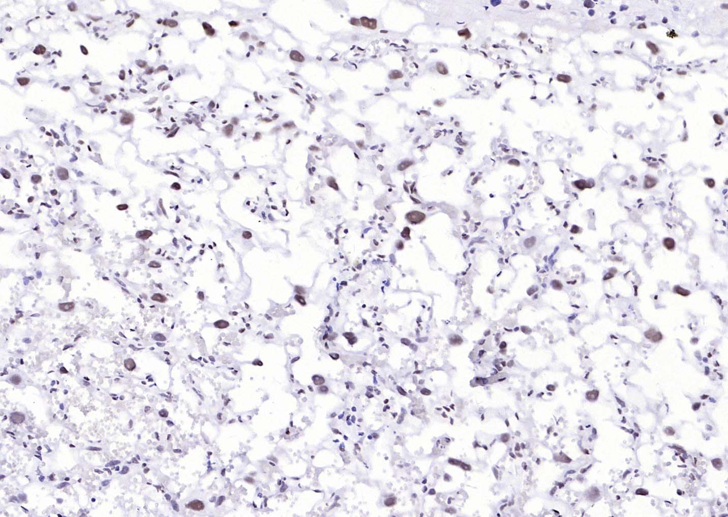 Paraformaldehyde-fixed, paraffin embedded (Rat lymphoid); Antigen retrieval by boiling in sodium citrate buffer (pH6.0) for 15min; Block endogenous peroxidase by 3% hydrogen peroxide for 20 minutes; Blocking buffer (normal goat serum) at 37°C for 30min; Antibody incubation with (YY1(Nuclear Loading Control)) Monoclonal Antibody, Unconjugated (bsm-52349R) at 1:200 overnight at 4°C, followed by operating according to SP Kit(Rabbit) (sp-0023) instructionsand DAB staining.