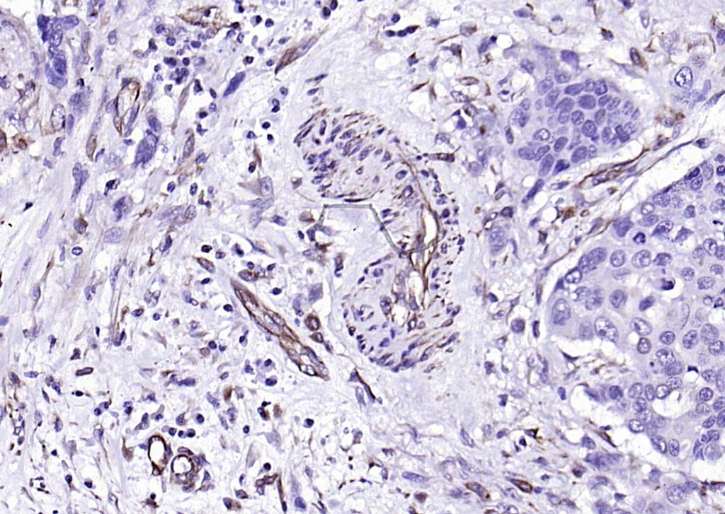 Paraformaldehyde-fixed, paraffin embedded (Human esophageal cancer); Antigen retrieval by boiling in sodium citrate buffer (pH6.0) for 15min; Block endogenous peroxidase by 3% hydrogen peroxide for 20 minutes; Blocking buffer (normal goat serum) at 37°C for 30min; Antibody incubation with (ACE2) Monoclonal Antibody, Unconjugated (bsm-51221M) at 1:200 overnight at 4°C, followed by operating according to SP Kit(Mouse)(sp-0024) instructionsand DAB staining.