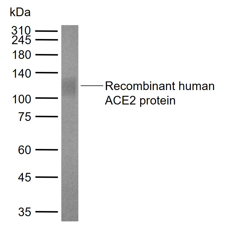 Lane 1: Recombinant human ACE2 protein, His (HEK293)