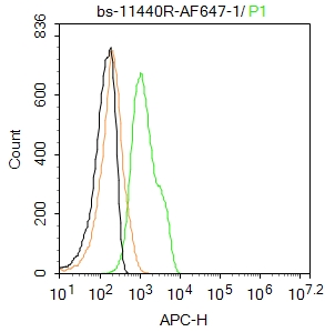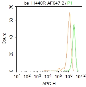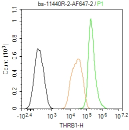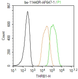 Primary Antibody (green line): Rabbit Anti-THRB1 antibody (bs-11440R-BF647)